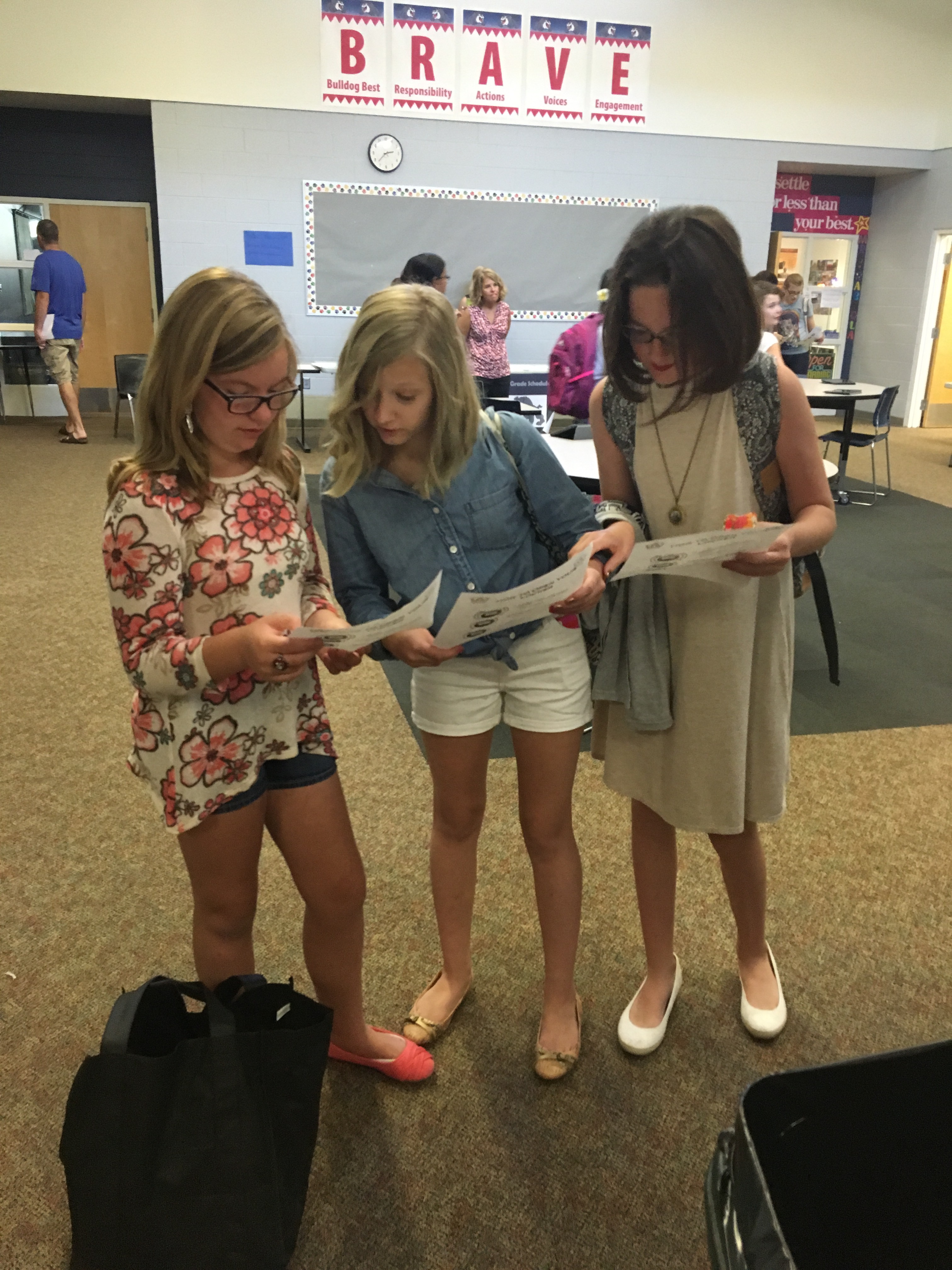 A first for our first–middle school orientation. Classes begin Wednesday! I love these girls, and I’m glad they are together. Brave, indeed.