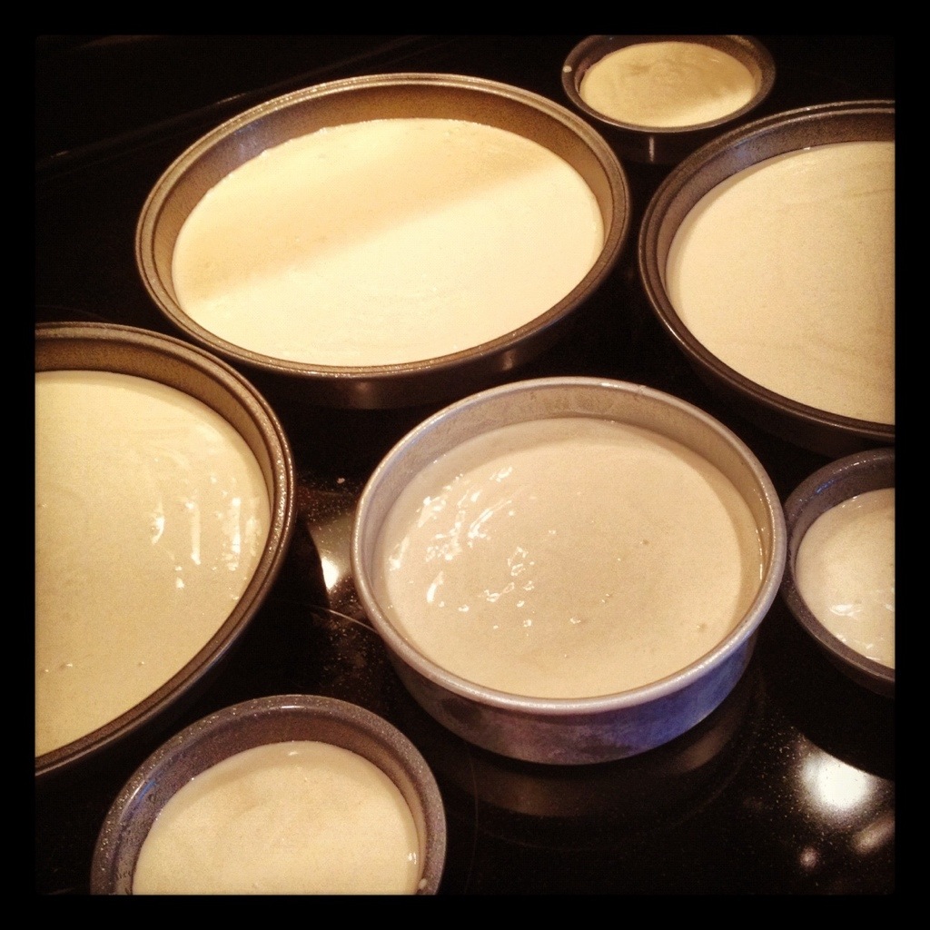 I offered to make Katie’s wedding cake, assuming somehow that years of cupcake baking had prepared me for what is actually a rather monumental task. After a few months of testing recipes, I decided to use this very moist yet airy vanilla iteration. In a dozen trial runs (including four for a practice cake), I found Madagascar vanilla played better than Mexican, and that bake-even strips are miraculous.