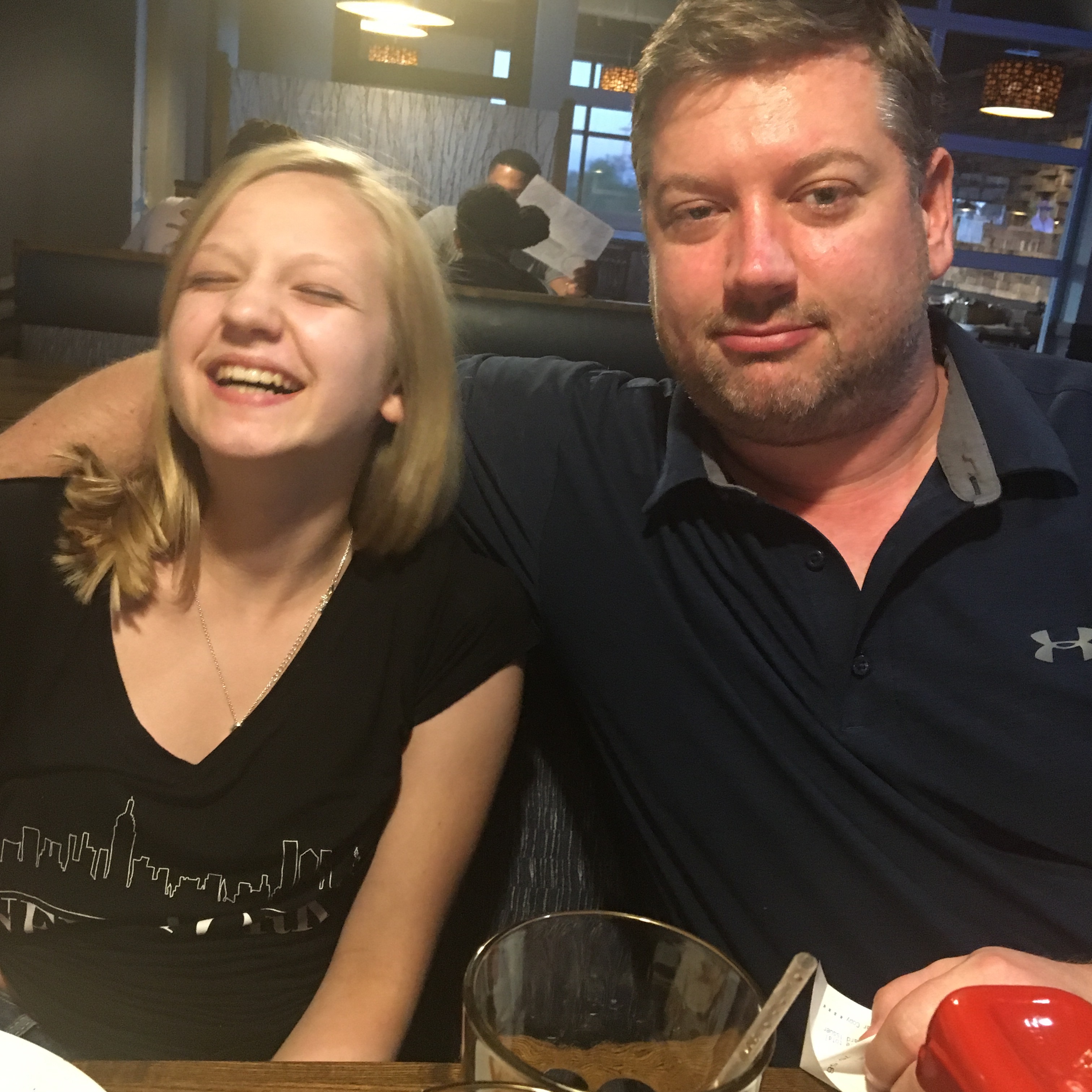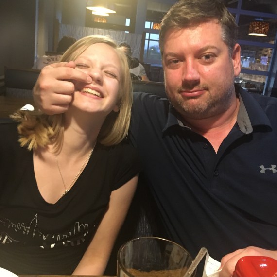Me: “Seven years ago. Let me take your picture with your dad–I’ll post that.”