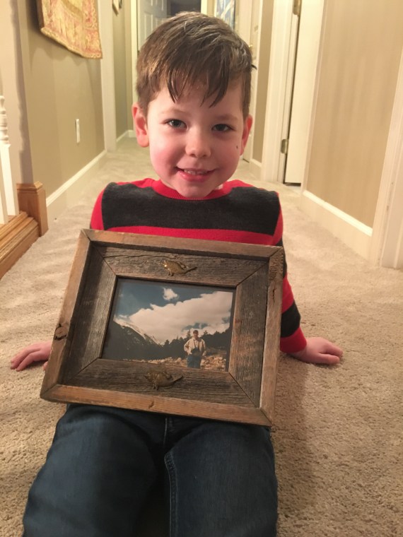 Bryan spent a snowy week in Steamboat for a conference last week. Everybody missed him, but especially Owen. For show and share at preschool Friday, I sent a photo of Bryan that hangs in our room–it was taken when we were 19, while visiting the Rocky Mountains. Owen LOVES this photo, and he asks frequently when it was taken.